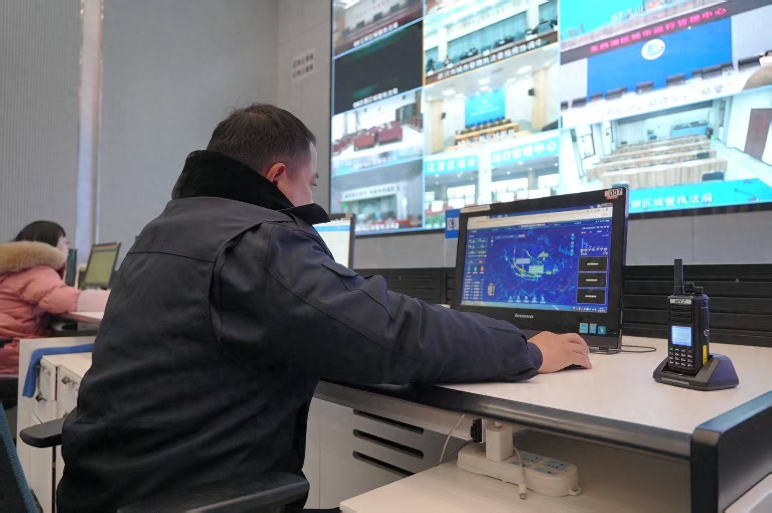 这里,是全区应对此轮低温雨雪冰冻天气的“智慧大脑”。值班负责人指着大屏介绍:“这是我们新升级的融雪防冻应用场景,左边看天气、查物资、知人员,中间一张图掌握全区道路状况和事件动态,右边视频轮巡能调看关键点位甚至启用无人机巡查。全区‘六横十纵’主干道、重要桥梁,还有商圈、学校周边,基本实现了巡查全覆盖。”各功能区各司其职,又协同联动,让调度指令更加精准高效。