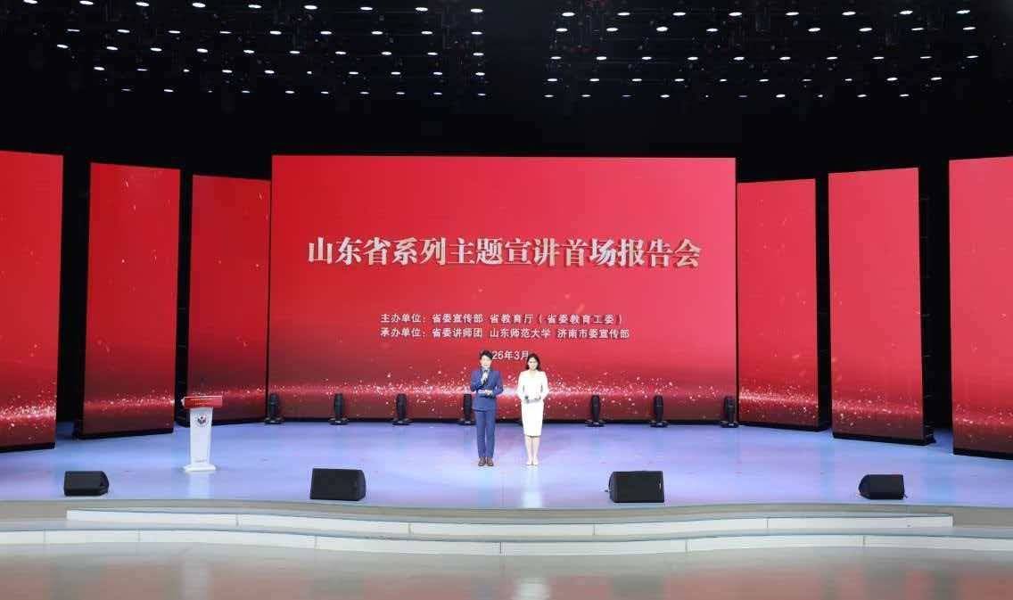 3月10日下午,山东省系列主题宣讲首场报告会在山东师范大学举办。宣讲报告会聚焦学习贯彻落实习近平新时代中国特色社会主义思想主题,在春季开学季之际,为广大师生送上一堂有思想深度、情感温度与时代活力的“开学第一课”。