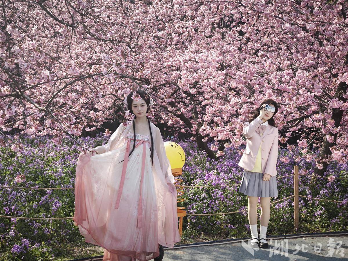 3月11日下午两点,武汉东湖樱花园的阳光正好,粉嫩的早樱如云似霞。